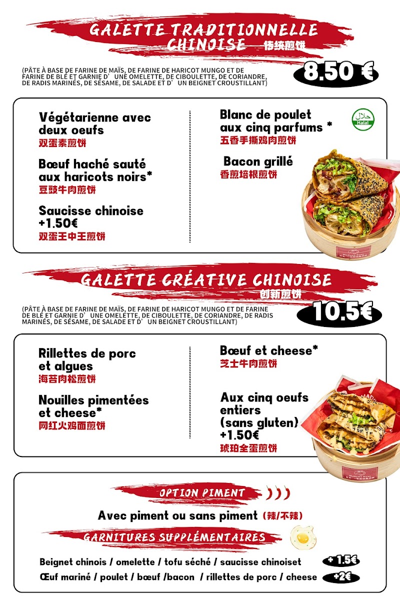 Welcome to MADAME GUAN关太一家煎饼果子店, a hidden gem in Paris located at 33 Rue du Rocher. This charming eatery offers an authentic taste of Chinese cuisine, specializing in delicious 煎饼果子 (jianbing guozi), a savory crepe filled with various ingredients, including a choice of chicken and flavorful spices.